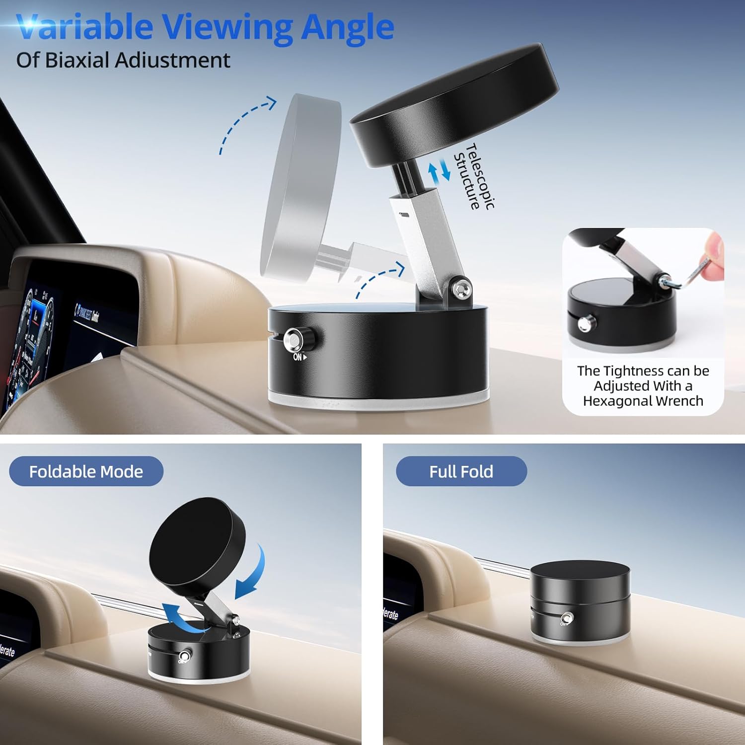 🧼 Vacuum Suction Base – Easily mounts to dashboards or windshields